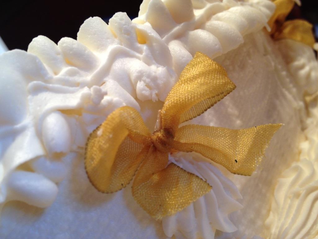 Mom asked if I had some gold ribbon that she could use on the cake.